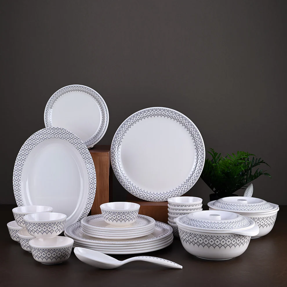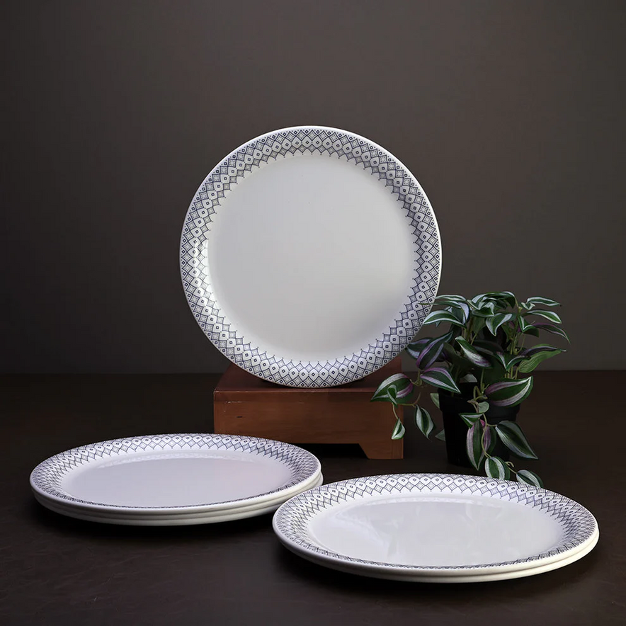Our 31pc Round Shalimar Dinner Set features contemporary patterns in shades of blue on a white surface. The intricate design adds a touch of elegance and sophistication to your table. The set is a perfect companion for both casual and formal dining occasions with your loved ones.